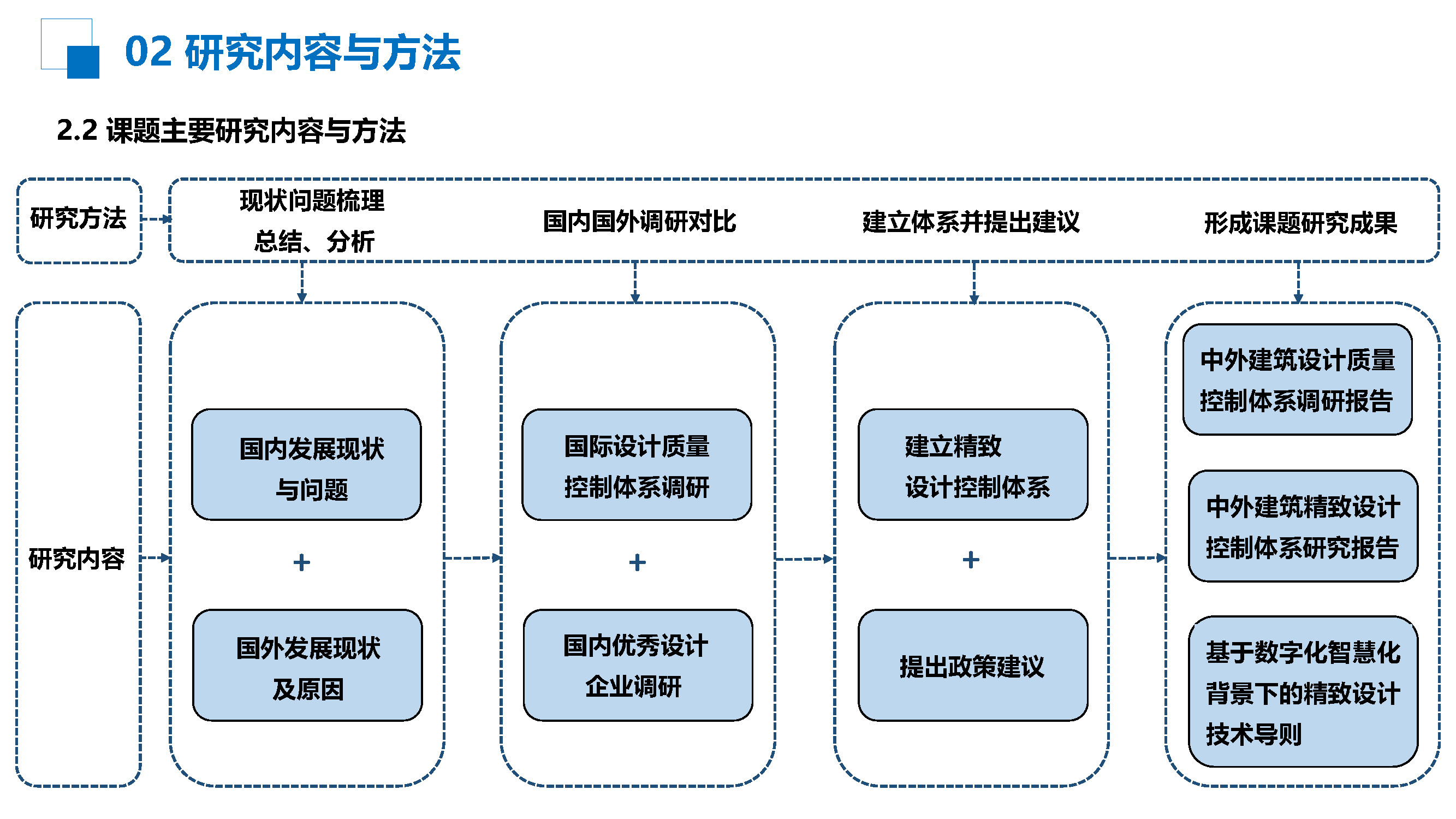 The topic carries out in-depth research on the four key elements of architectural design quality and quality: exquisite design integrated control process, exquisite design quality control technical measures, exquisite design digital technology application, and exquisite design quality control measures in the construction stage, in order to improve the quality of architectural engineering and promote the high-quality development of the industry.
