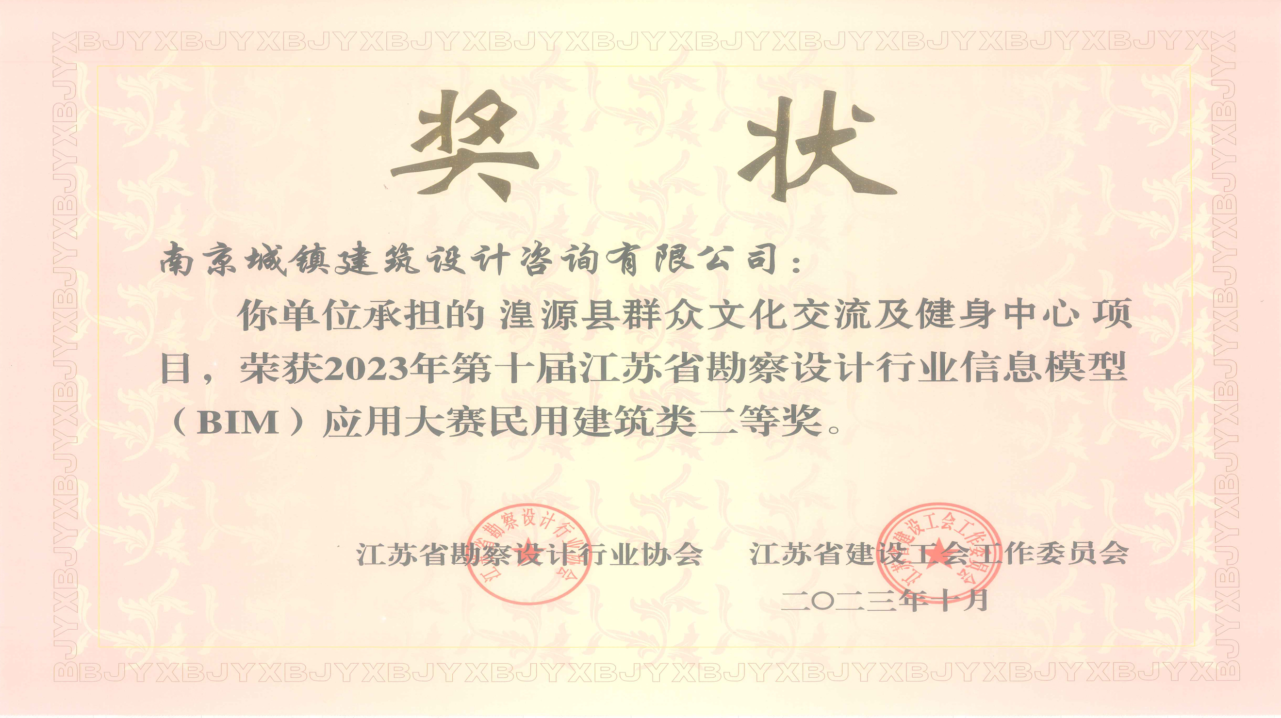Huangyuan County mass cultural exchange and fitness center project undertaken by our company won the second prize of civil construction category in 2023 Jiangsu Survey and Design Industry Information Model (BIM) Application Competition.