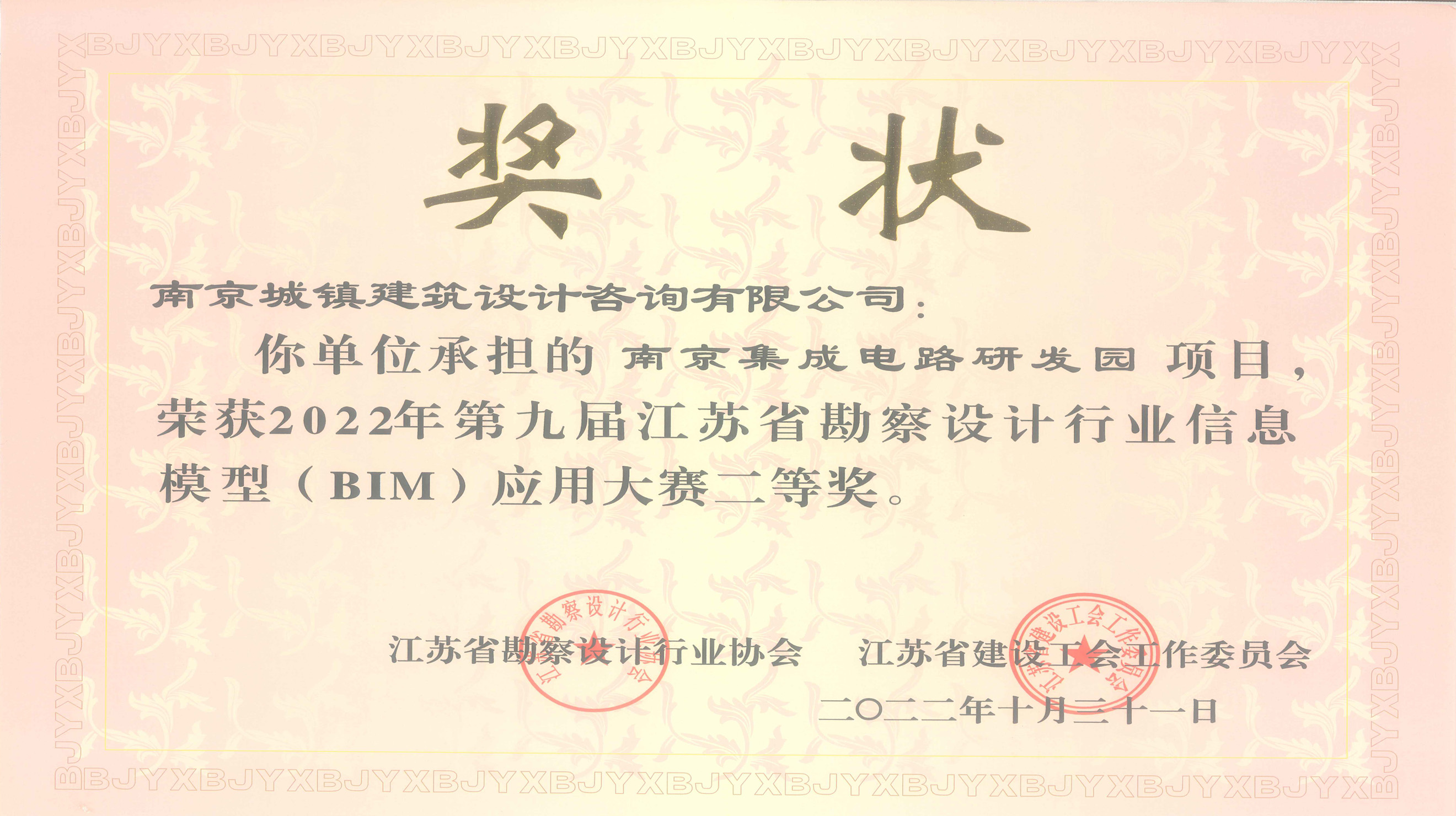 The second prize of Jiangsu Survey and Design Industry Information Model (BIM) Application Competition in 2022 - Integrated Circuit R&D Park Project